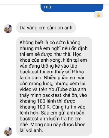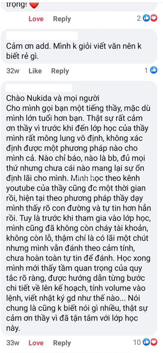 Bản thân mình cũng thấy rất vui và ý nghĩa mỗi khi nhận được kết quả tốt như vậy. Tất nhiên, nó không chỉ nằm ở một phía mà còn nhờ cả sự kiên trì, nỗ lực đi đúng lộ trình của mọi người. Nó không chỉ là những con số mà nó còn nằm ở sự luyện tập kỷ luật trong giao dịch, quản lý vốn theo những gì đã học.